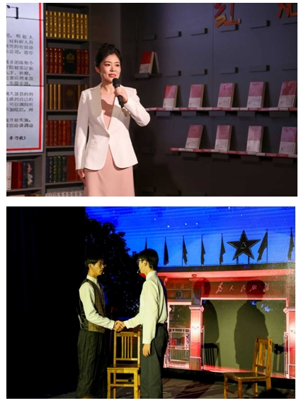 旅游管理系黨支部副書記王娟以《思想浸潤心靈  傳文脈繼往開來——習近平文化思想在浙江的溯源與實踐》為題,分享了《習近平在浙江》的讀書心得,情景劇《遺址邊的吶喊》,將思想性、藝術(shù)性及感染力高度結(jié)合,讓觀眾在情感共鳴中感受習近平文化思想的偉力。