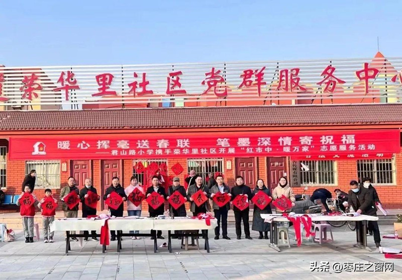 1月11日下午,接到區(qū)融媒體中心的電話,《棗莊之窗》小編驅(qū)車來到榮華里社區(qū),感受這里不一樣的年味氣氛。來到社區(qū)大院,看到書法愛好者、社區(qū)紅馬甲、學(xué)生們,還有周邊的社區(qū)居民早早來到大院忙乎了起來,你搬案桌,我裁紙,他研墨水,準(zhǔn)備著一場(chǎng)書寫春聯(lián)的筆墨盛會(huì)。
